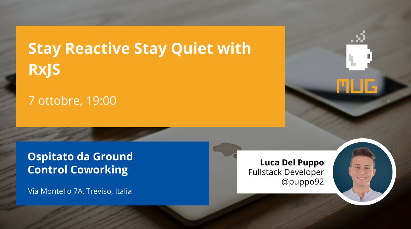 MUG ritorna, dopo lo stop estivo, ed in presenza! Luca ci introdurrà di Reactive Programming, nello specifico della loro implementazione per Javascript, RxJS.